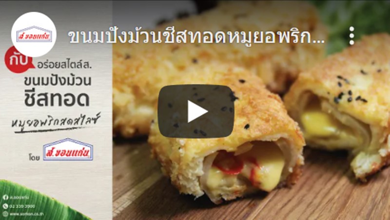 ขนมปังม้วนชีสทอดหมูยอพริกสดสไลซ์