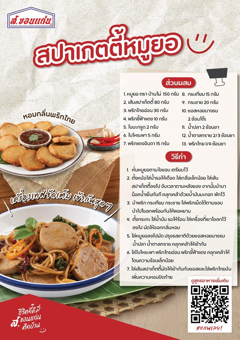 เมนู สปาเก็ตตี้หมูยอ Recipe